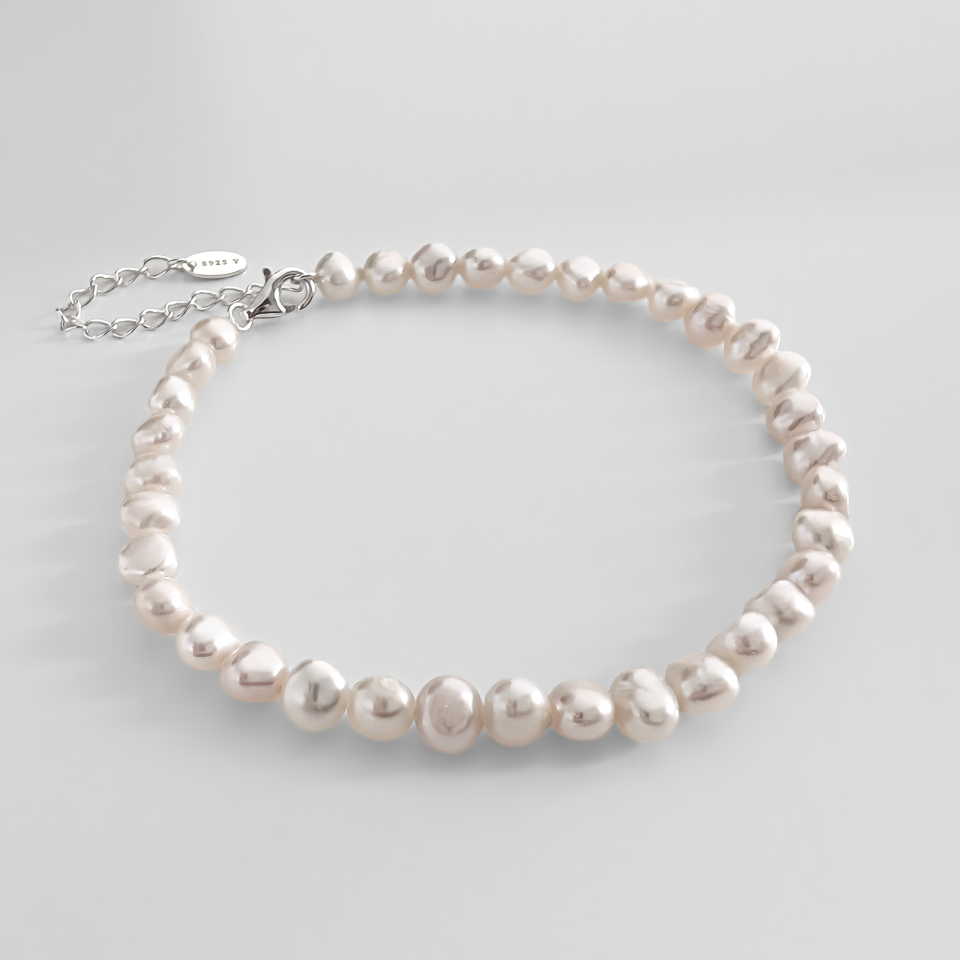 Naturligtvis har vi inte sparat på Låsen, alla pärlsmyckens låsningar är tillverkade i 925 sterling silver, precis som förlängningskedjan.